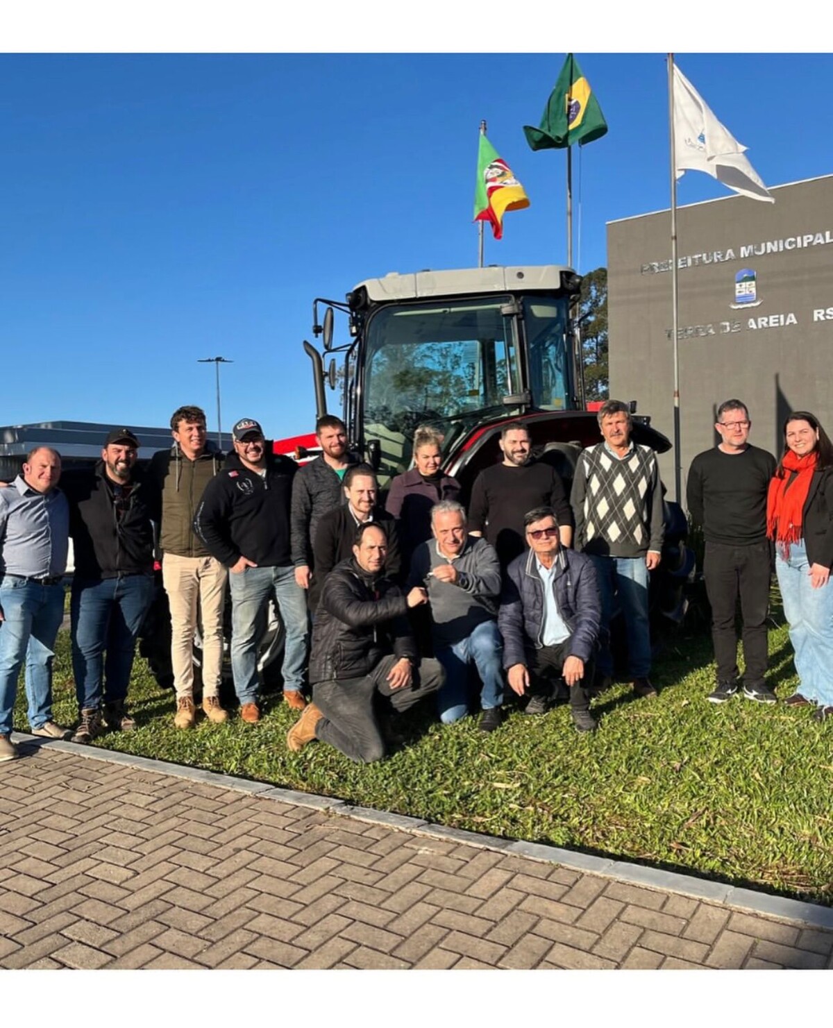 O prefeito Osvaldo de Mattos, o vice-prefeito Diogo Souza, secretários municipais e vereadores participaram do ato de entrega de um trator gabinado da marca Massey Ferguson, no valor de R$ 286.000,00, que será utilizado para atender os pequenos agricultores do município de Terra de Areia.