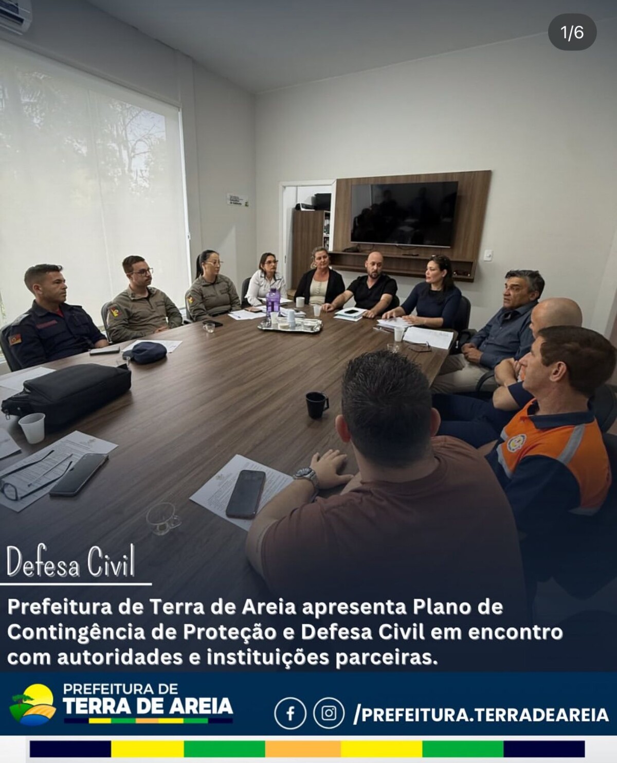 A Prefeitura Municipal de Terra de Areia, por meio da Defesa Civil Municipal representada por Luiz Antônio de Sousa, apresentou o Plano de Contingência de Proteção e Defesa Civil. O encontro reuniu secretários, diretores, Emater, Brigada Militar e Corpo de Bombeiros, além do Major João César Selva e do Tenente-Coronel Valecir Ambrósio, da Defesa Civil Estadual. O plano foi amplamente debatido pelos participantes, que contribuíram com sugestões e aprimoramentos, fortalecendo a preparação conjunta do município para situações de emergência.