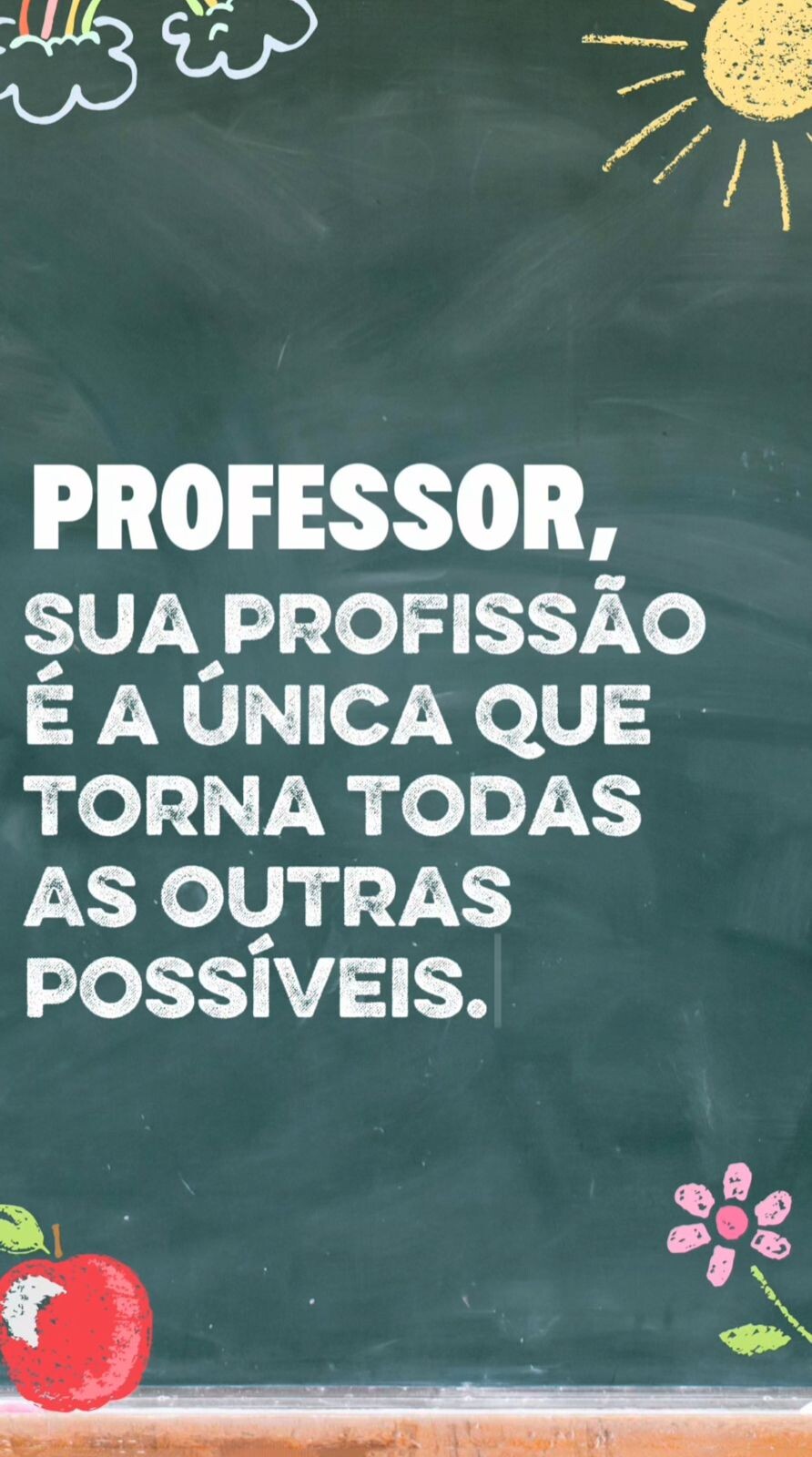 No gesto simples de ensinar, o professor forma não apenas alunos, mas também médicos, engenheiros, artistas, agricultores, motoristas, enfermeiros... todas as profissões que movem o nosso mundo.