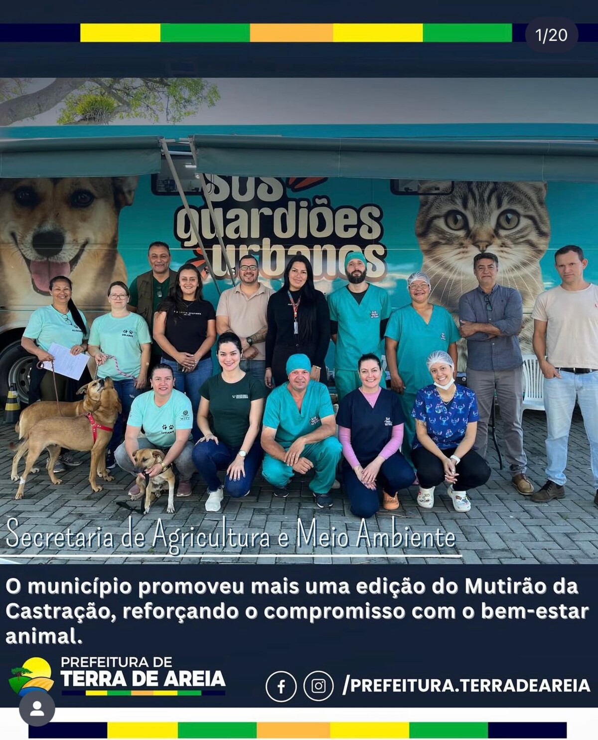 Agradecemos à empresa SOS Guardiões Urbanos pelo serviço prestado com excelência na realização das castrações, e à Associação de Proteção Animal de Terra de Areia, pela importante mobilização que possibilitou o atendimento de diversos animais de rua.