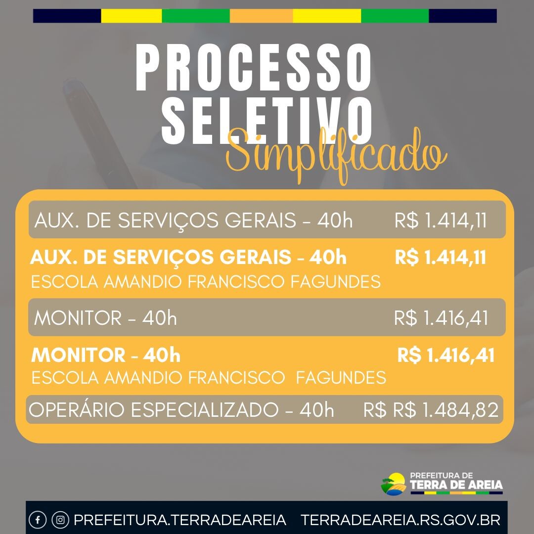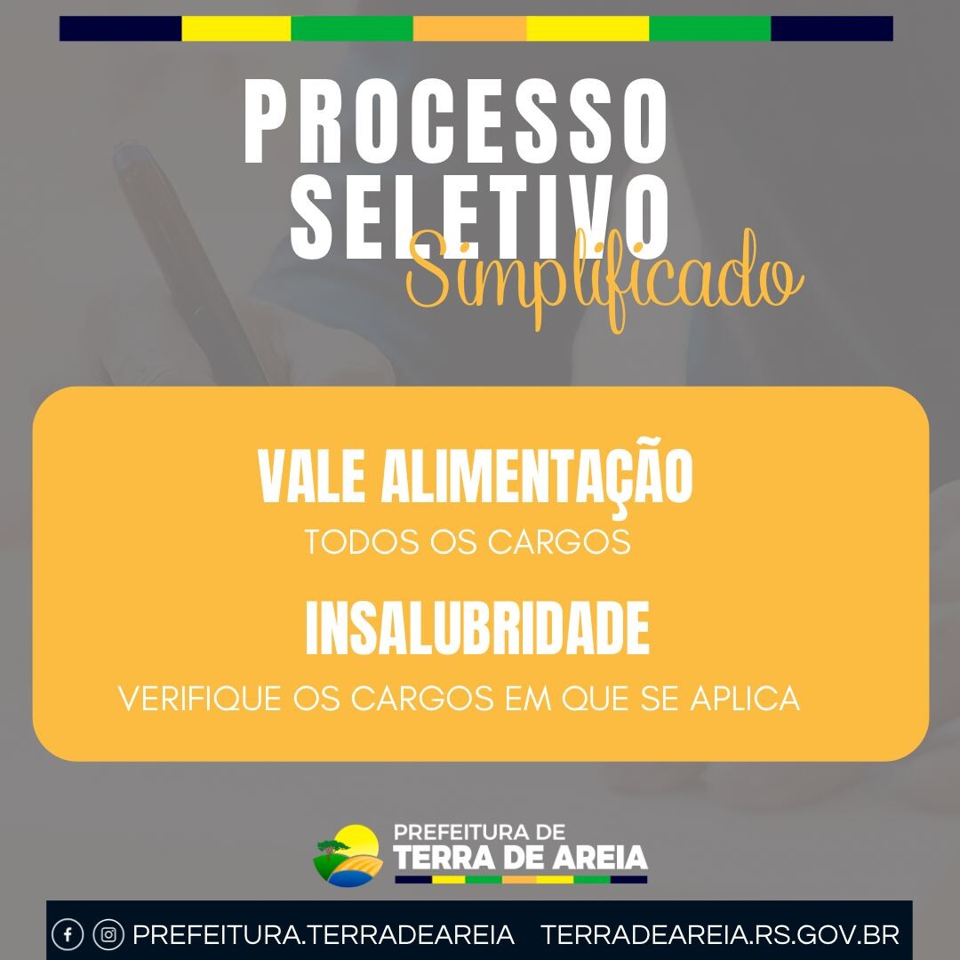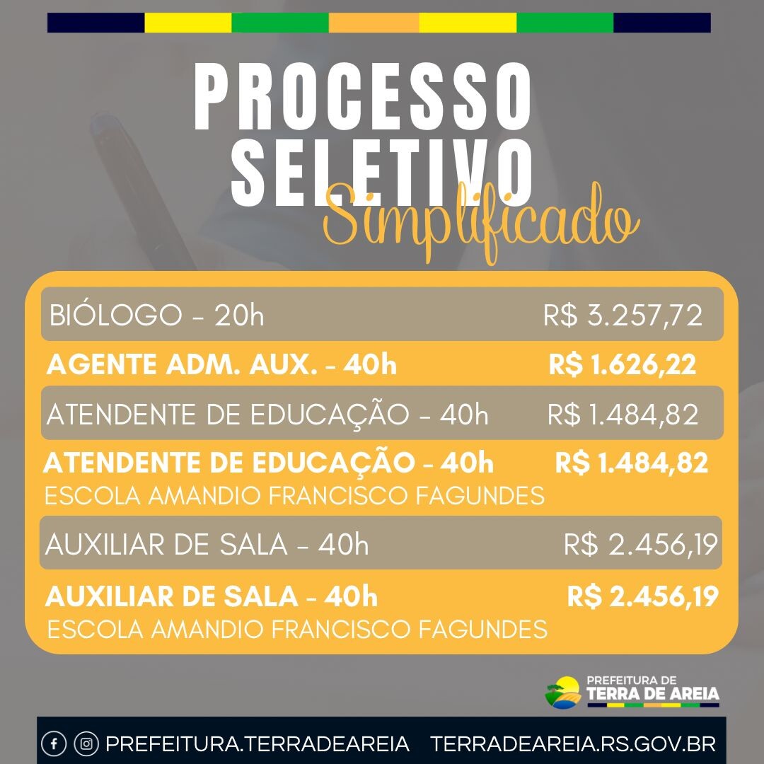 A Prefeitura de Terra de Areia informa que está aberto o Processo Seletivo Simplificado, conforme o Edital nº 380/2025.