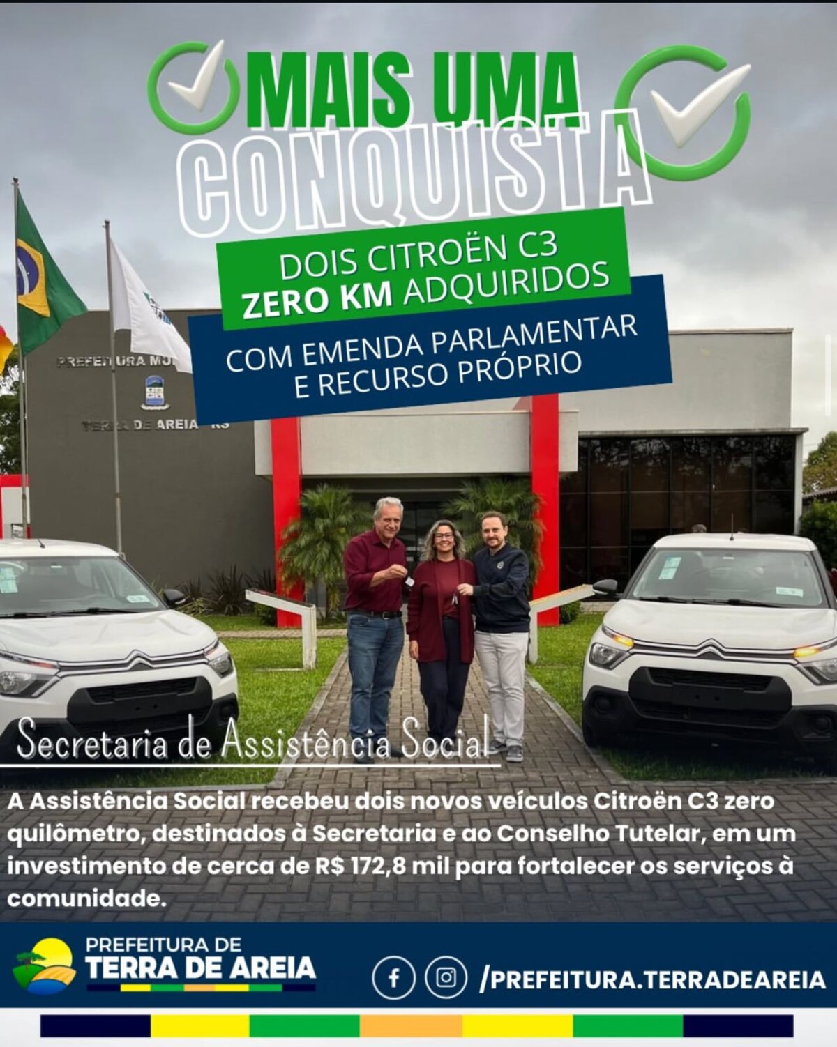 Os veículos foram adquiridos por meio de emenda parlamentar destinada pelo Deputado Federal Afonso Hahn e recursos próprios do município, totalizando um investimento de cerca de R$ 172.800,00 na renovação da frota e no fortalecimento das políticas públicas de assistência social.