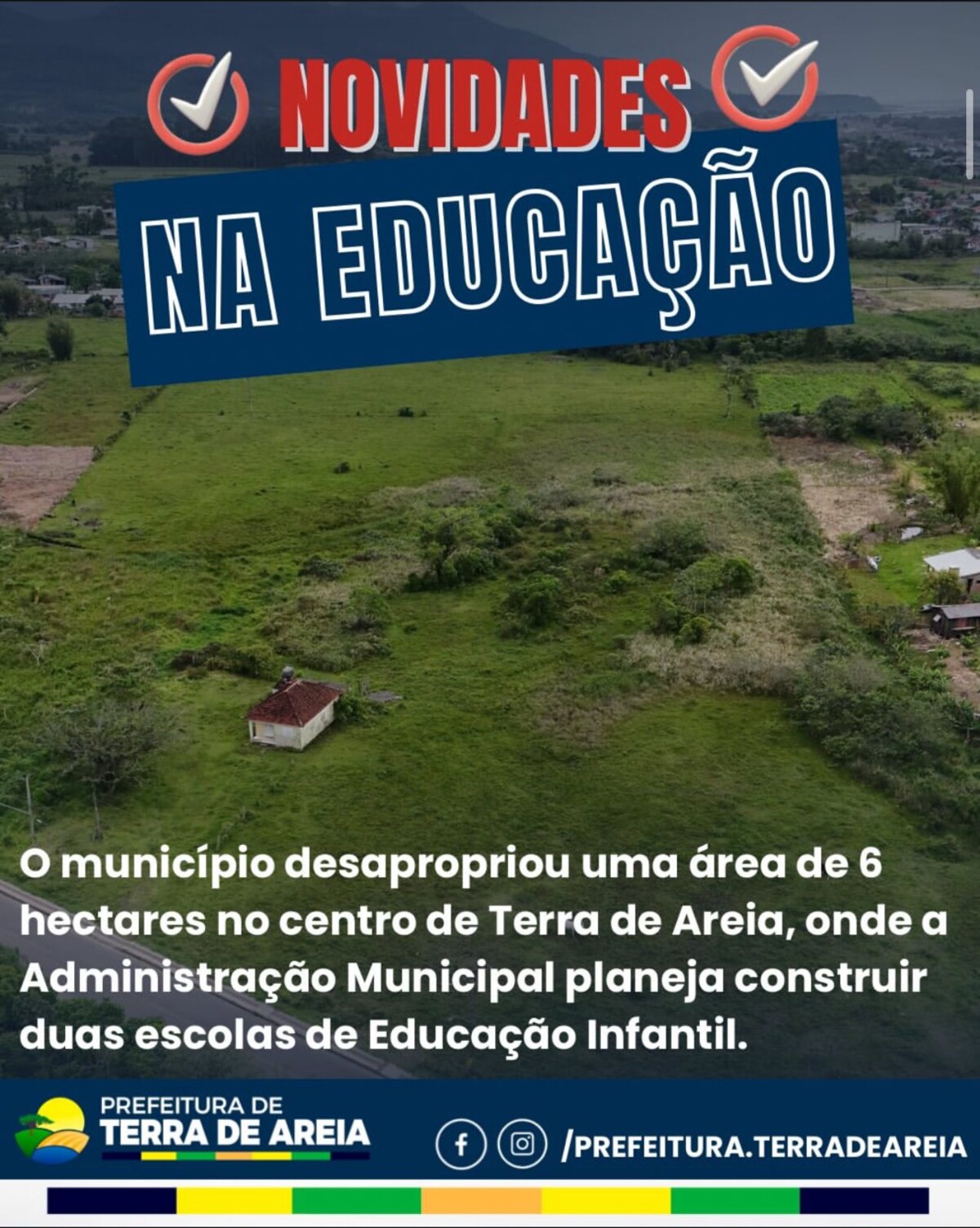 A Prefeitura de Terra de Areia realizou a desapropriação de uma área de aproximadamente 6 hectares, localizada no centro da cidade.
