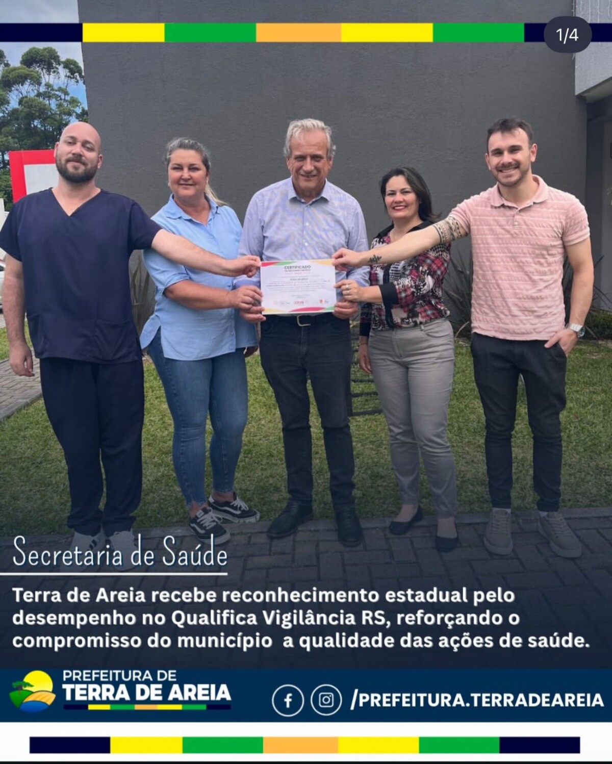 O evento estadual de entrega dos certificados ocorreu em Porto Alegre, no dia 04/12/2025. Esse importante reconhecimento reafirma o compromisso de Terra de Areia com uma gestão responsável e com políticas de saúde cada vez mais eficientes e integradas.