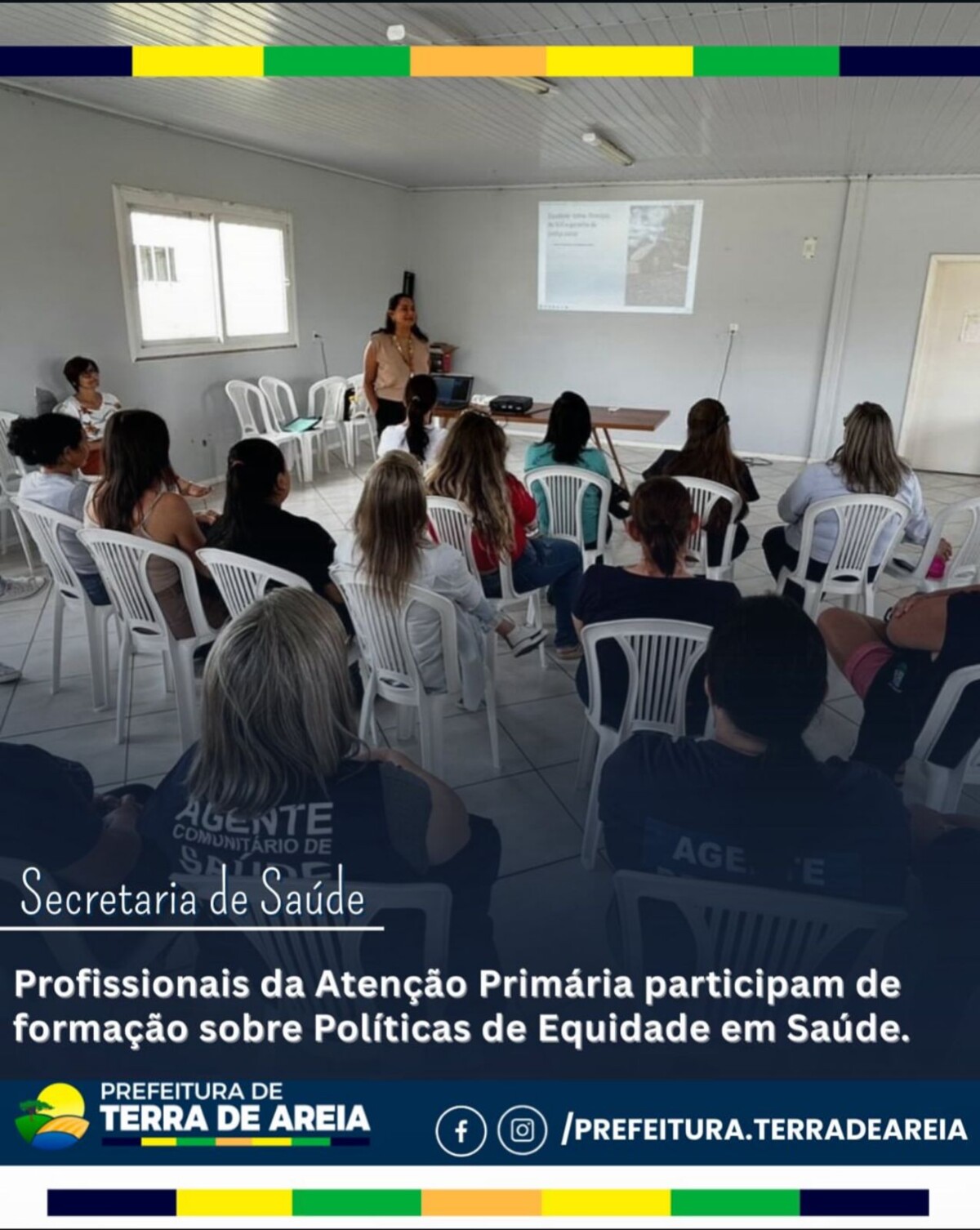 A formação foi ministrada por Djeniffer Rodrigues Coradini, da Coordenação Regional das Políticas de Equidade, da 18ª Coordenadoria Regional de Saúde, no Sindicato Rural, reunindo profissionais da APS para um momento de aprendizado, reflexão e fortalecimento das práticas de cuidado.