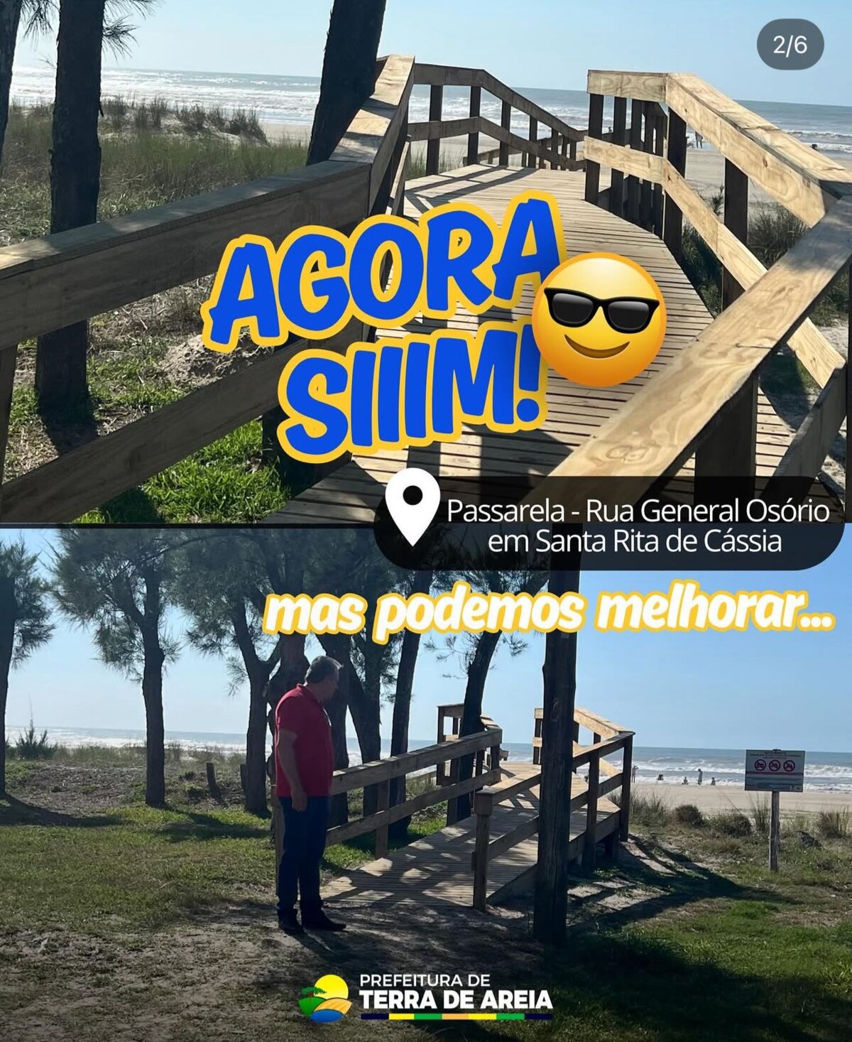 A Prefeitura de Terra de Areia realizou hoje a inauguração de três novas passarelas de acesso às praias do nosso município, um importante investimento em infraestrutura, mobilidade e qualidade de vida para a população e visitantes.