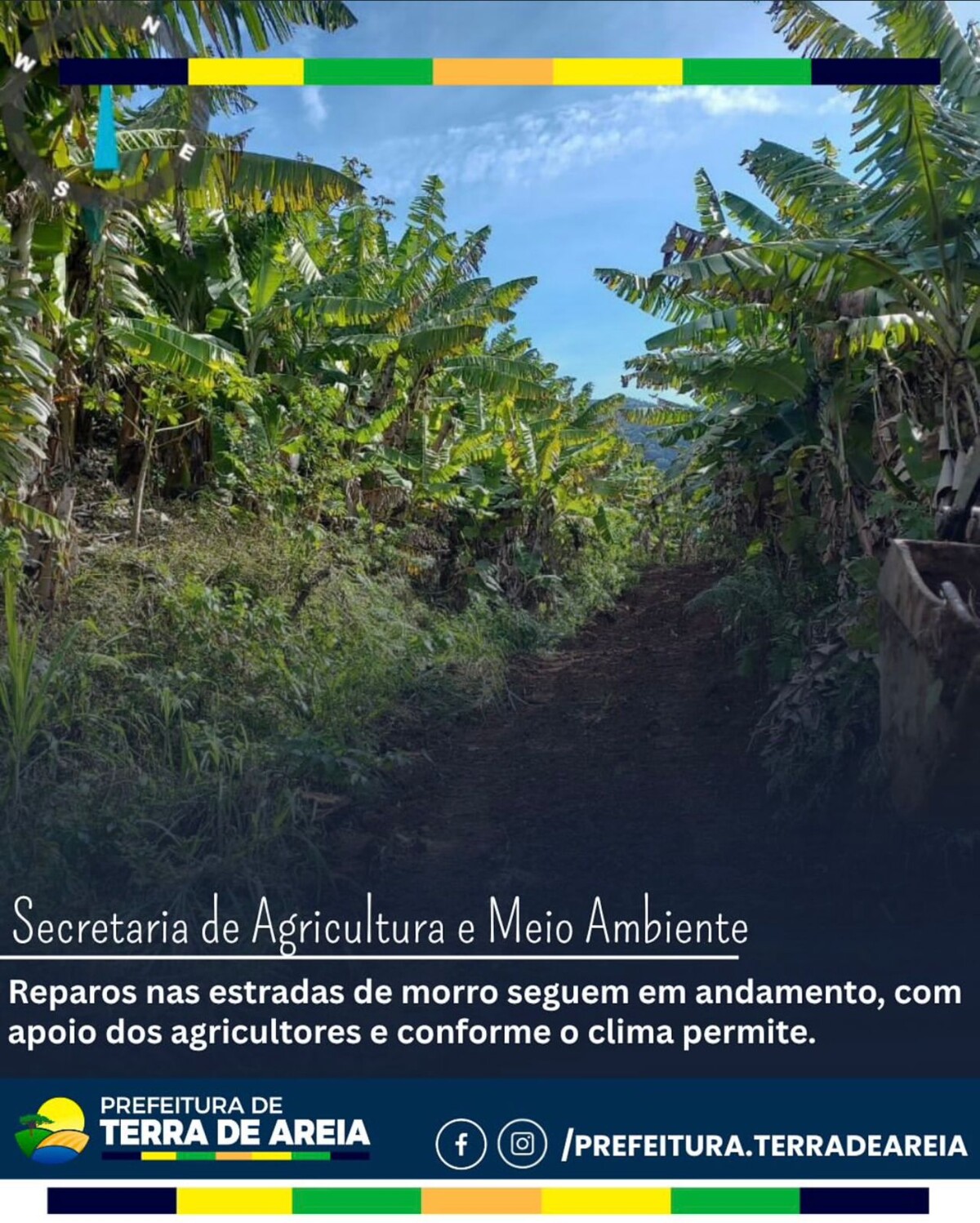 Empresa terceirizada segue com os reparos nas estradas de morro, com o objetivo de melhorar o acesso e a mobilidade dos nossos agricultores.