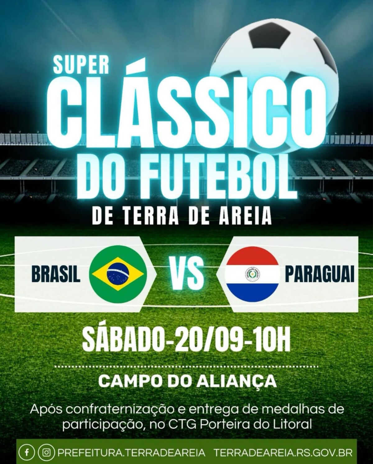 Após o jogo, teremos confraternização e entrega de medalhas de participação no CTG Porteira do Litoral.