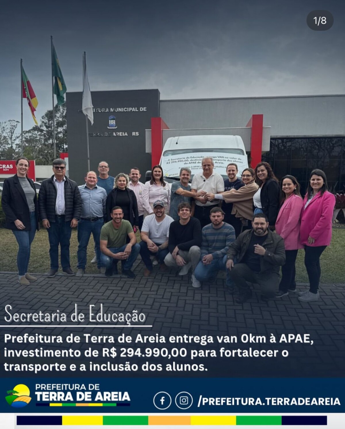 A Prefeitura de Terra de Areia, por meio da Secretaria de Educação, realizou a entrega de uma van Okm no valor de R$ 294.990,00 para a APAE do município.