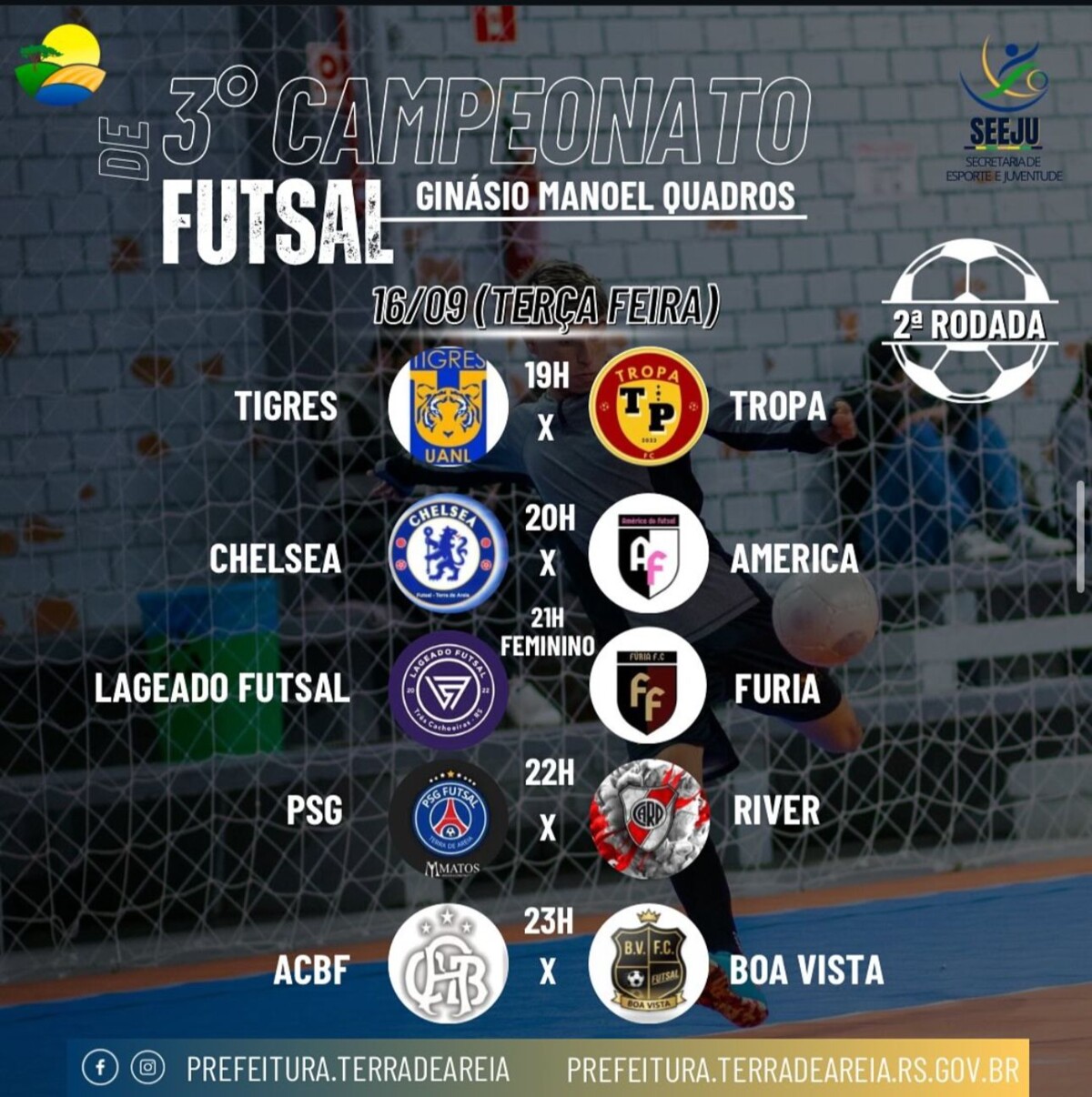 Vem aí a 2ª rodada do 3° Campeonato de Futsal no Ginásio Manoel Quadros!