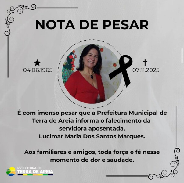 Com profundo pesar, a Prefeitura Municipal de Terra de Areia manifesta suas condolências pelo falecimento da servidora aposentada Lucimar Maria Dos Santos Marques.