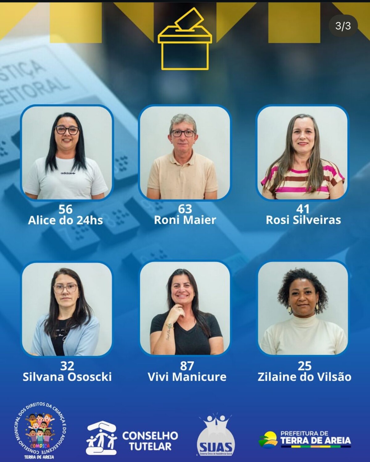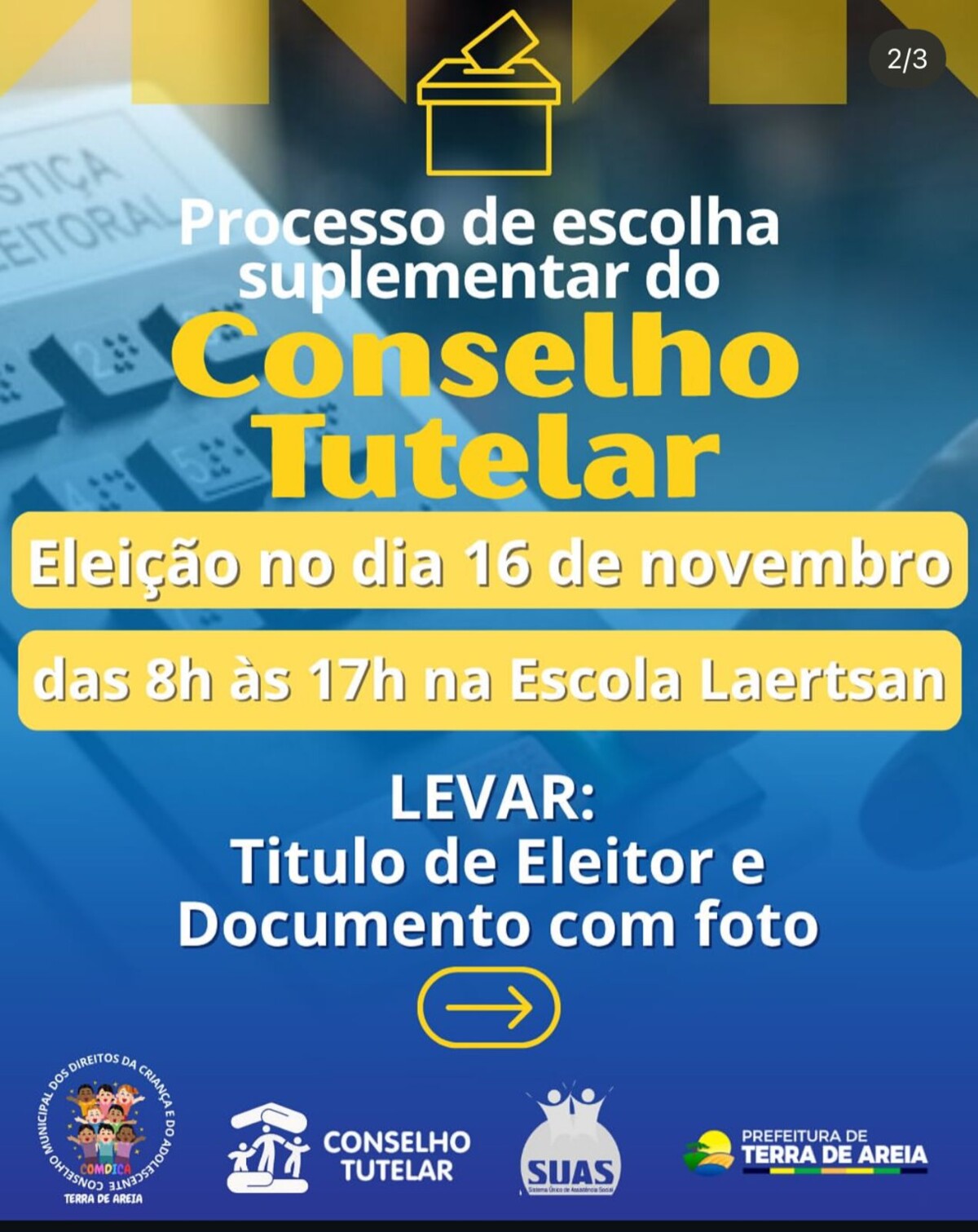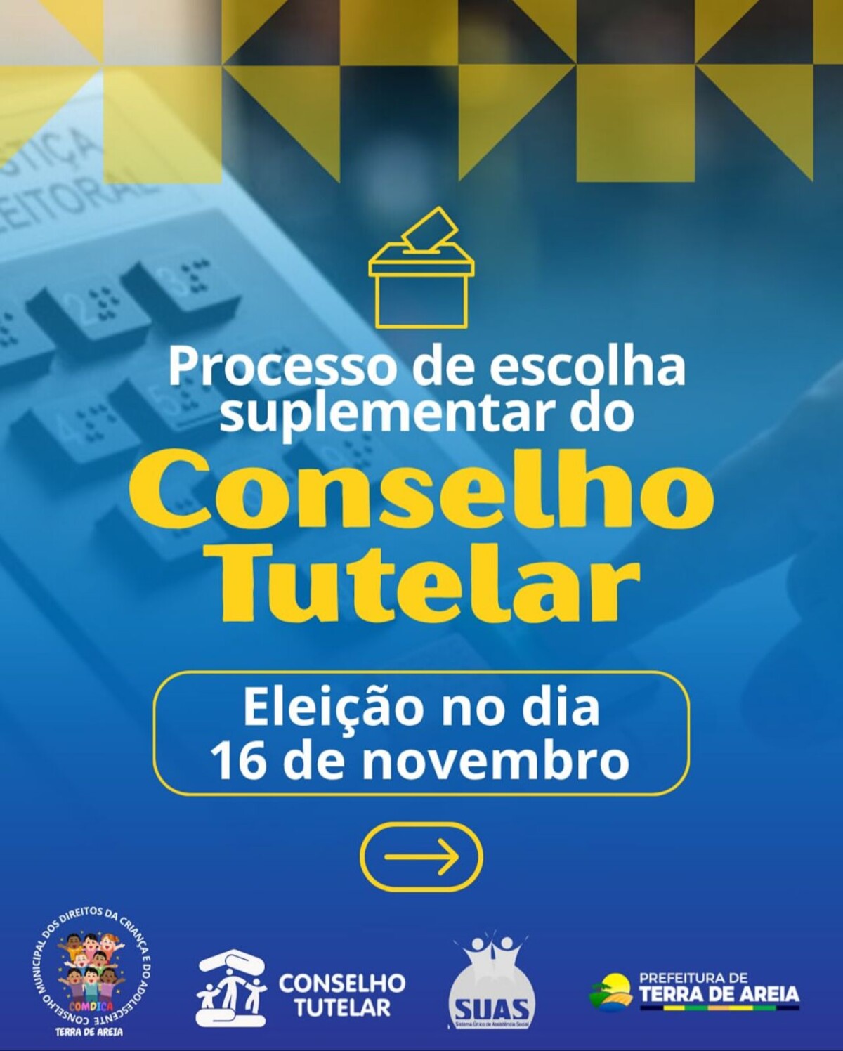 No próximo domingo, dia 16 de novembro, acontece a eleição para escolha dos novos suplentes do Conselho Tutelar de Terra de Areia.