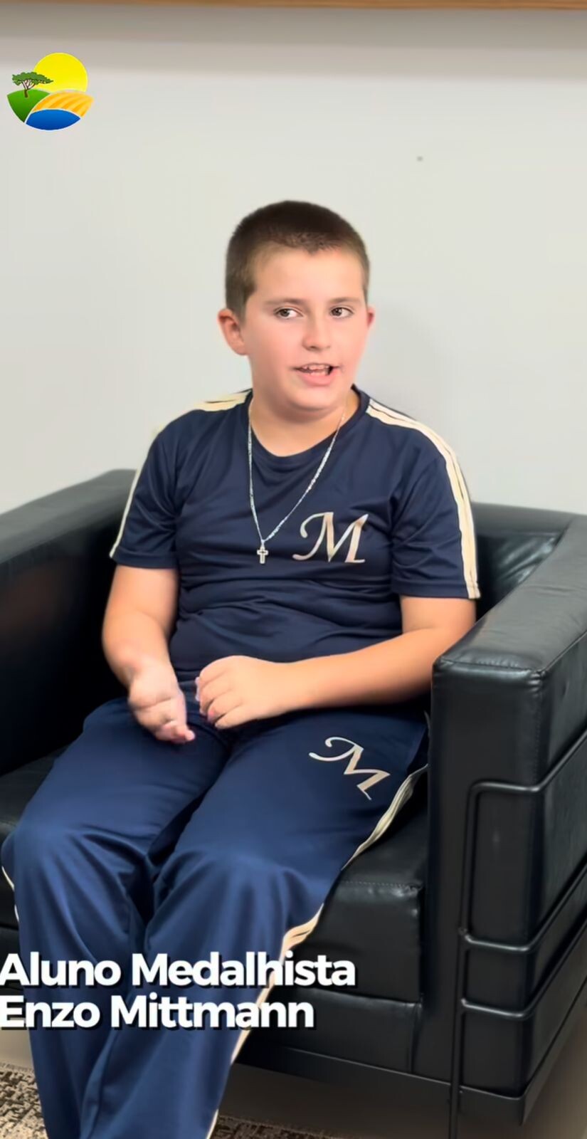 A solenidade de entrega da medalha ao aluno Enzo contou com a presença do Prefeito Osvaldo, da Secretária de Educação Josieli, de demais secretários municipais, da Diretora Janaína e da mãe do estudante, Sra. Josiane